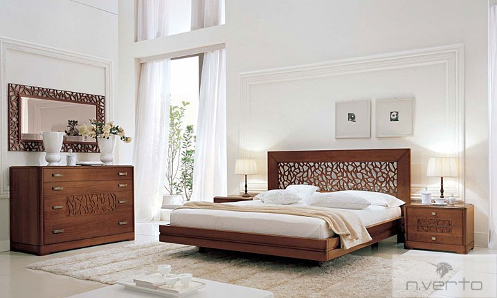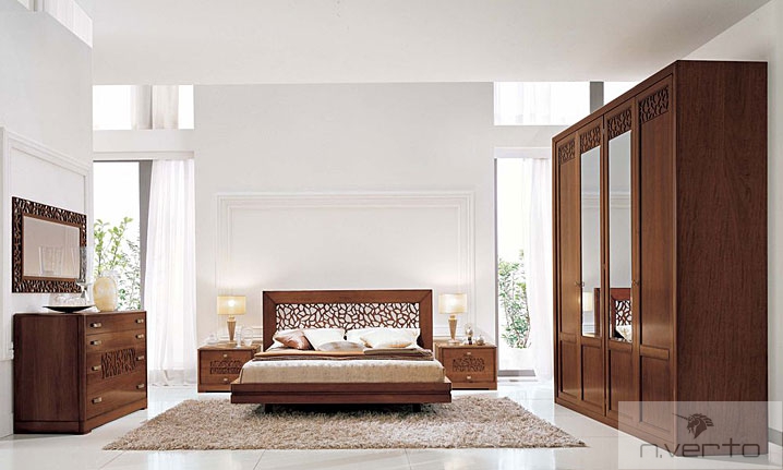 Cпальня  «LAGO di GARDA» Новинка современной классики. Теплые тона орехового дерева и беленого дуба, прекрасная отделка и рисунок на нижнем рельефе придают этой модели особый характер и подчеркивают любовь к каждой детали.