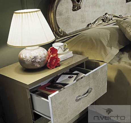 Тумбы, комоды, столики, шкафы представлены дизайнерами фабрики в исполнении, идентичном кровати.