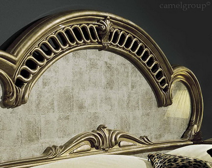 Cпальня выполнена в классическом стиле в дереве с позолотой, с лакировкой "слоновая кость" в изголовье и изножье.